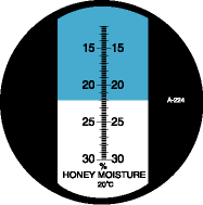 測(cè)量范圍:12.0 至 30.0%( 蜂蜜含水量 );最小標(biāo)度:0.2%(蜂蜜含水量)。
