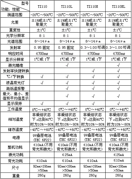 TI110系列便攜式輻射測溫儀是一種用途廣泛的非接觸測溫儀,操作簡便、測量迅速、使用安全、攜帶方便??捎糜陔娏ο到y(tǒng)中電接頭、軸承發(fā)熱點的查找,食品加工和貯藏的監(jiān)測,供熱制冷系統(tǒng)中的溫度檢查,以及象瀝青的鋪設、消防作業(yè)過程中的溫度檢查等。