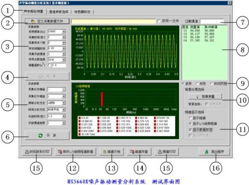 HS5660X型噪聲振動(dòng)測(cè)量分析系統(tǒng)是一種以計(jì)算機(jī)為中心,配套精密、高速、多通道噪聲振動(dòng)信號(hào)同步測(cè)量分析系統(tǒng),可進(jìn)行大容量數(shù)據(jù)存儲(chǔ)、高速數(shù)據(jù)處理,實(shí)現(xiàn)實(shí)時(shí)FFT細(xì)譜、1/3倍頻程譜、聲壓/時(shí)間歷程分析等等各種時(shí)頻分析。并能自動(dòng)生成各種分析結(jié)果圖表。該系統(tǒng)可根據(jù)用戶(hù)需要提供不同配置的聲學(xué)/振動(dòng)分析系統(tǒng),為各類(lèi)聲學(xué)/振動(dòng)信號(hào)做有針對(duì)性的詳細(xì)分析,并將實(shí)時(shí)分析的結(jié)果以圖形、列表或報(bào)告的形式輸出。為工程技術(shù)、質(zhì)量管理人員提供詳實(shí)的產(chǎn)品質(zhì)量判據(jù),同時(shí)為產(chǎn)品的研發(fā)設(shè)計(jì)、生產(chǎn)工藝、質(zhì)量控制提出指導(dǎo)性意見(jiàn)。