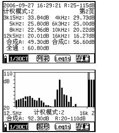 2) 頻率計(jì)權(quán):并行(同時(shí))A、C、Z 。頻譜分析界面下由頻譜合成;總值分析界面下由數(shù)字濾波實(shí)現(xiàn)。