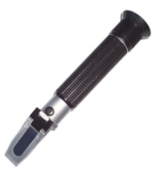 手持式折射儀是為測量溶液的濃度或水溶性混合物的比例而設計的精密的光學儀器。簡單易用,且價格優(yōu)惠。它是為測量多種溶液濃度而專門設計的,如:水果汁、飲料、蜂蜜 、鹽水、海水、清洗液、電池液、防凍液和工業(yè)溶液等.只要滴幾滴液體在棱鏡上,然后向著光觀察,就可以讀出溶液的濃度。如果標有ATC的是增加了溫度自動補償系統(tǒng)。