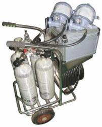 SP-98 車式長(zhǎng)管呼吸裝置 SP-98車式長(zhǎng)管呼吸裝置,是一種采用車載貯氣瓶、長(zhǎng)膠管輸送氣體供操作者呼吸用的正壓式呼吸裝置。企業(yè)標(biāo)準(zhǔn)Q/HDKLA012-2003,參照歐洲標(biāo)準(zhǔn)EN132制定。 SP-98安全可靠、使用、維護(hù)簡(jiǎn)便,可供給兩名操作者同時(shí)使用。由于采用車載式,SP-98能夠很方便地移動(dòng)至離操作現(xiàn)場(chǎng)最適宜的位置,4個(gè)氣瓶可以同時(shí)或者單獨(dú)使用,并在使用過(guò)程中更換其中任意一只氣瓶。它特別適用于狹窄的工作場(chǎng)合,如罐體內(nèi)部、船艙、地下管道、密閉空間等,在石化、冶金、消防、航天、核工廠、化工廠等需長(zhǎng)時(shí)間在毒氣環(huán)境及貧氧環(huán)境中工作的場(chǎng)合被廣泛使用。注意:在使用中必須有一人監(jiān)視呼吸裝置的使用情況,及時(shí)換接氣瓶。 主要特點(diǎn)