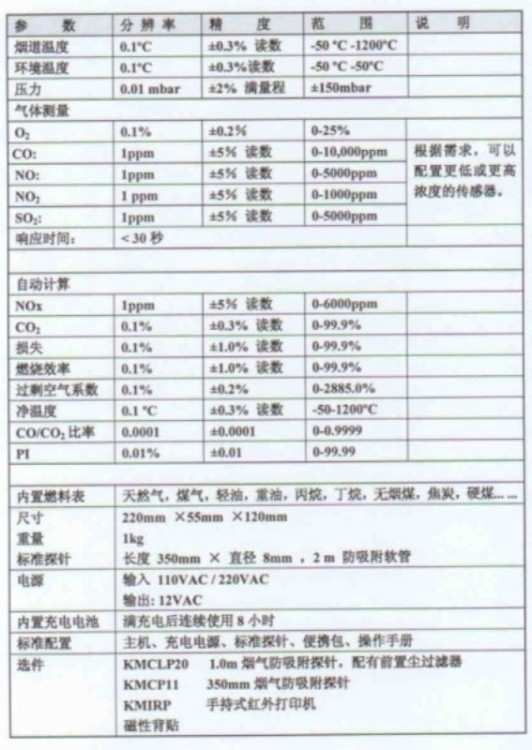 - 關(guān)鍵參數(shù):KM940手持式多組分煙道氣體分析 用于鍋爐的燃燒測(cè)試和煙氣污染排放監(jiān)測(cè) 可同時(shí)測(cè)量O2和3個(gè)污染氣體以及煙氣溫度,環(huán)境溫度,煙道壓力.傳感器 SO2, CO, NO, NO2 任選1-3個(gè)靈活組合