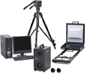 如左圖所示,系統(tǒng)圖片中的PC和顯示器均為市場(chǎng)銷售產(chǎn)品,三角架是另售的附帶品。