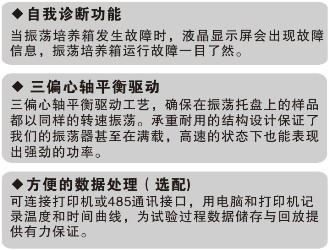 ●箱門丹啟時,微風(fēng)循環(huán)、加熱和搖床自動停止,無溫度過沖之弊。