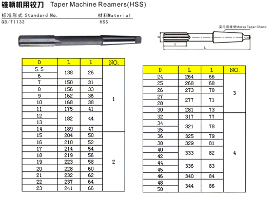 - 儀器名稱:錐柄機(jī)用鉸刀