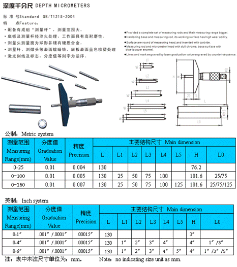 - 儀器名稱:深度千分尺