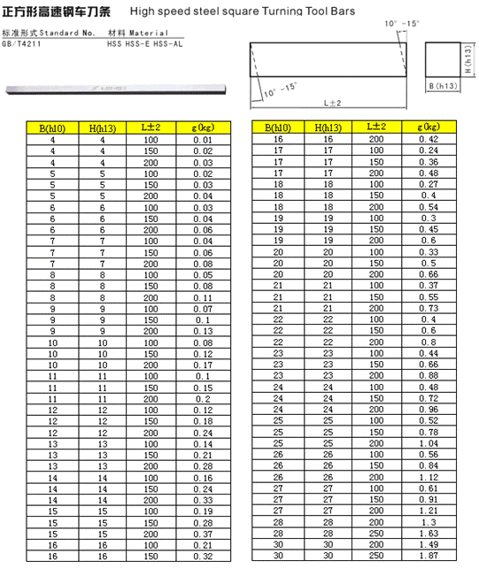正方形高速鋼車刀條