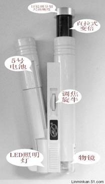 4、兩邊拉開電池盒部份燈就會亮,把觀察物放在防護罩中心,把眼睛對準目鏡,調(diào)節(jié)調(diào)焦齒輪,至看清為止。變倍時直接把目鏡拉出實現(xiàn)變倍,然后再調(diào)焦直到看清為止。