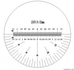 目鏡最下面是45倍,目鏡最上(拉上來)面是60倍,分劃刻度尺分別是45倍和60倍對(duì)應(yīng)刻度測(cè)量。目鏡可360°旋轉(zhuǎn)對(duì)應(yīng)被看物,目鏡旋轉(zhuǎn)調(diào)整,可同時(shí)看清分劃尺和視野中的物體,可適應(yīng)不同視力用戶使用。目鏡順時(shí)針方向旋轉(zhuǎn)可同時(shí)測(cè)量孔距、刻線寬度、刻線距離、鍵槽寬度、狹縫凹痕寬度、長(zhǎng)度、金屬和非金屬表面質(zhì)量、纖維、織物密度、野外標(biāo)本等,XK系列均可同時(shí)測(cè)量0~180°角度。
